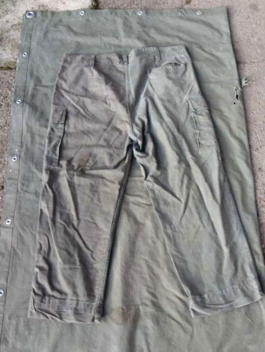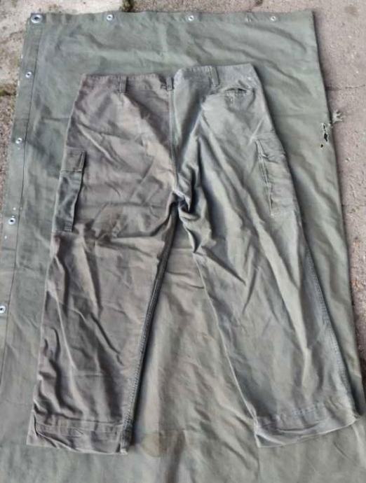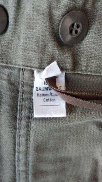 Orginal njemačke vojne hlače praktički nove bez ikakvih oštečenja 100°pamuk kvalitetan čvrst materijal, veličina 58, točne dimenzije prikazane na slici. Šaljem pošta, tisak, bus nakon vidljive uplate ili osobno preuzimanje, pouzečem ne šaljem. Cijena sa dostavom 35€.