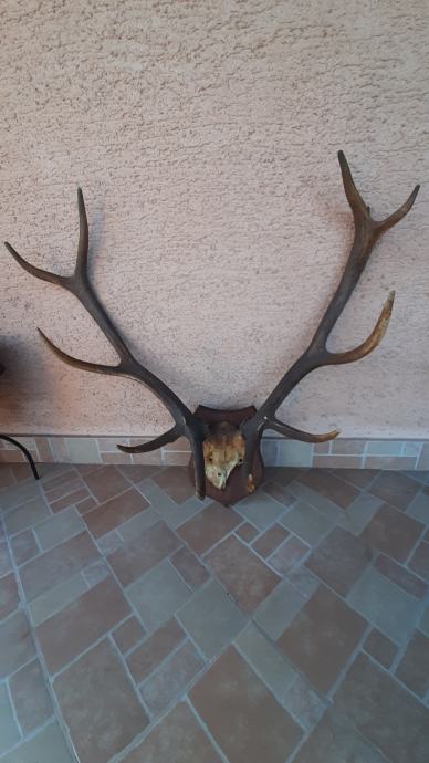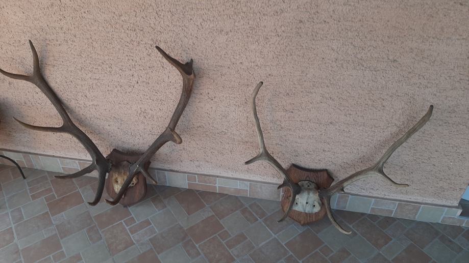 Jelenski deseterac i osmerac te 2 od srnjaka. Svi na ukrasnoj dasci.