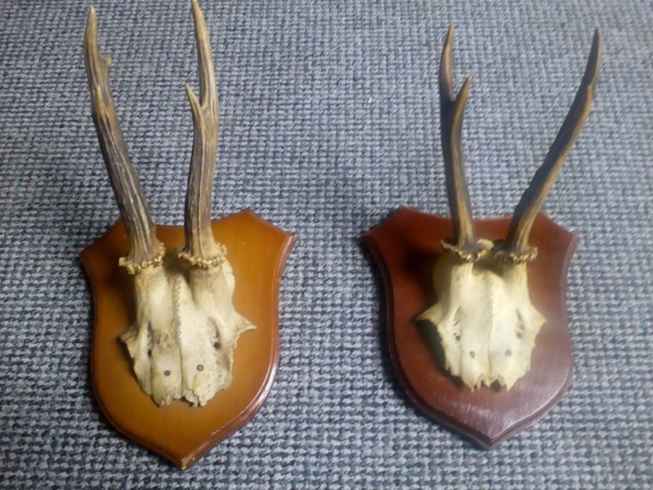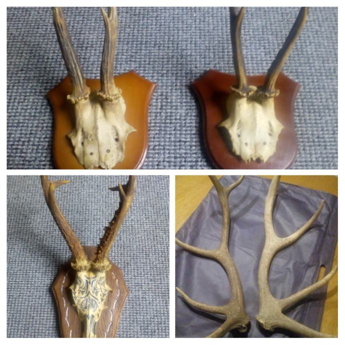 Prodajem 3 komada rogovlja srndaća na drvenom postolju te jelenje rogove, 70 kn po komadu. Desni rogovi srndaća su prodani (na slici gdje su 2 komada).