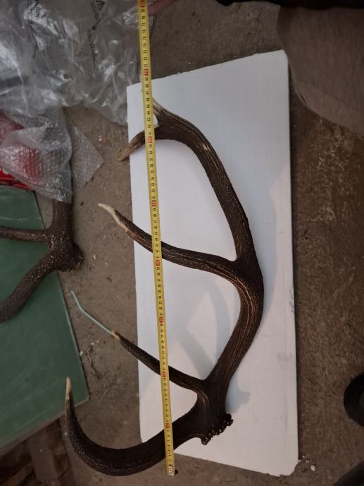 Rogovlje od jelena, odbačeni, oko 5 kg - teško mi je točno izvagat jer je rog velik, a vaga mala. Simetrični. Tamni. Iskričavi.