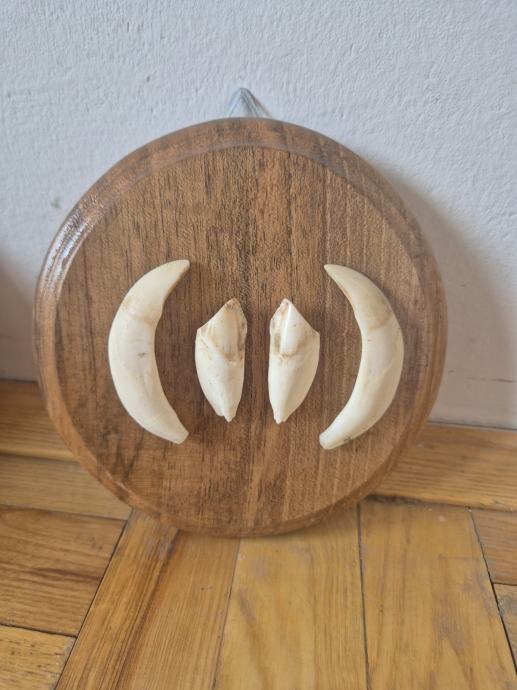 Kljove vepra (izbijeljene i napunjene voskom) na pločici, ukupno 9 kom prodajem.
