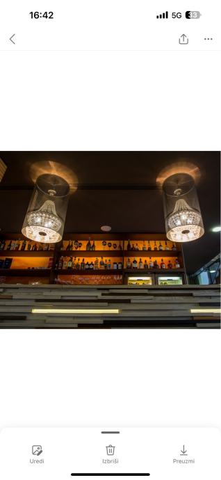 Prodajem 4 atraktivna srebrna viseća lustera sa kristalima. Fi 48 cm, dužine 82 cm.