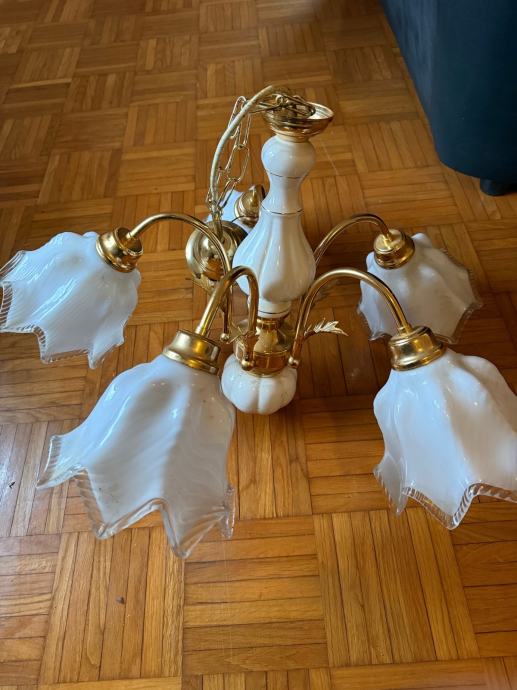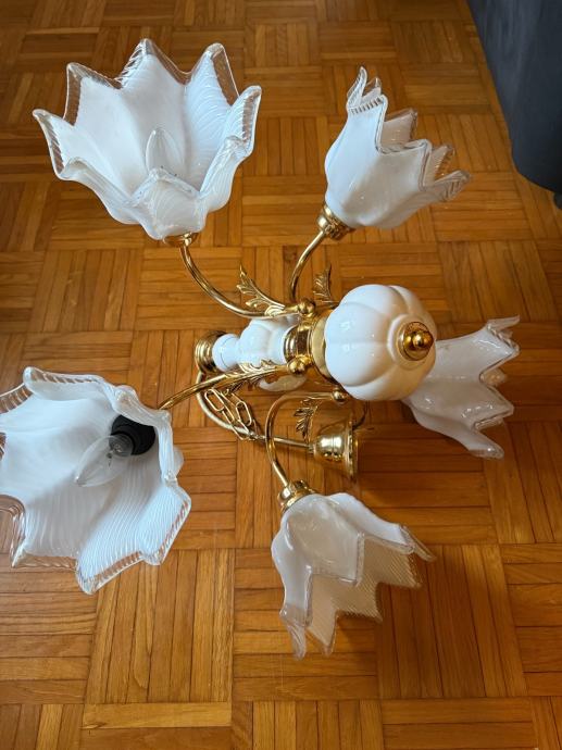 Rabljeni usčuvani starinski luster sa murano staklom i pozlaćenim elementima.