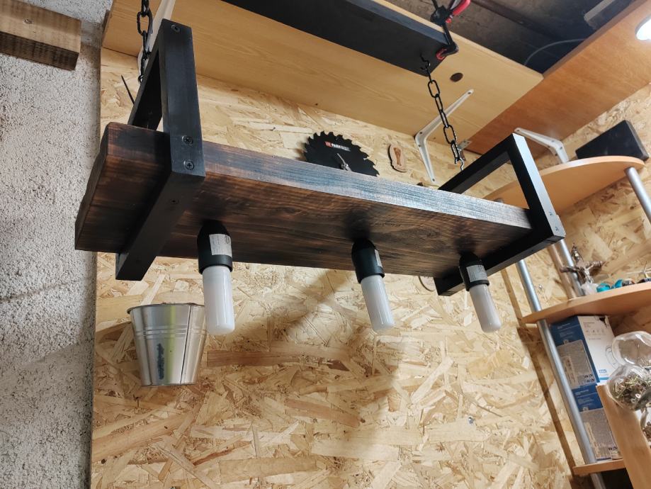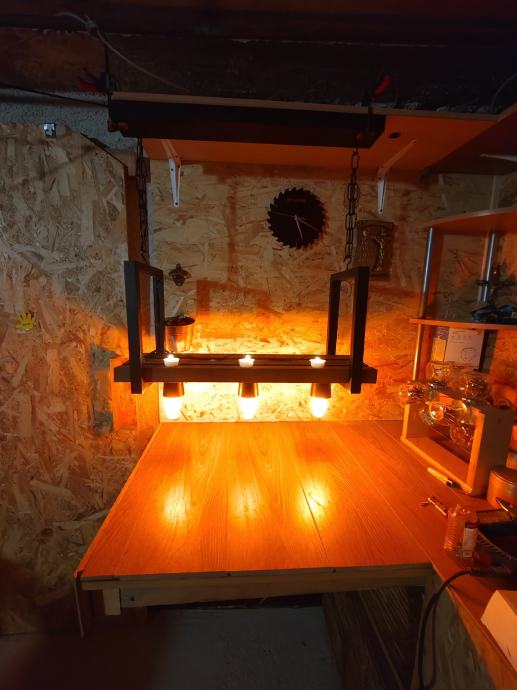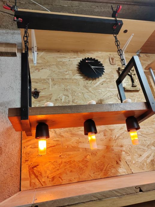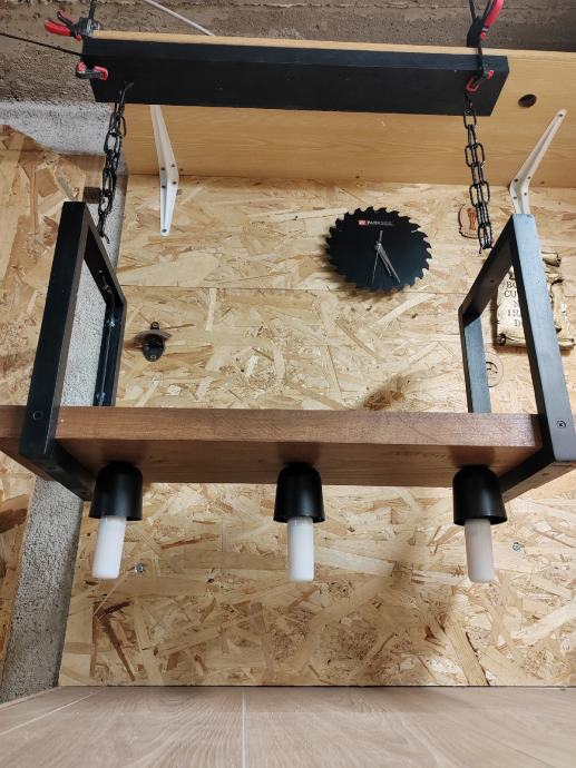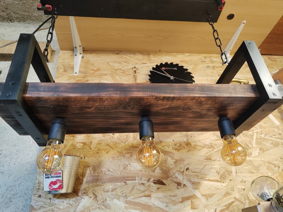 Drveni lusteri dimenzija 70x20cm,stavljeni lanci kao visilice, modeli su sa tri žarulje