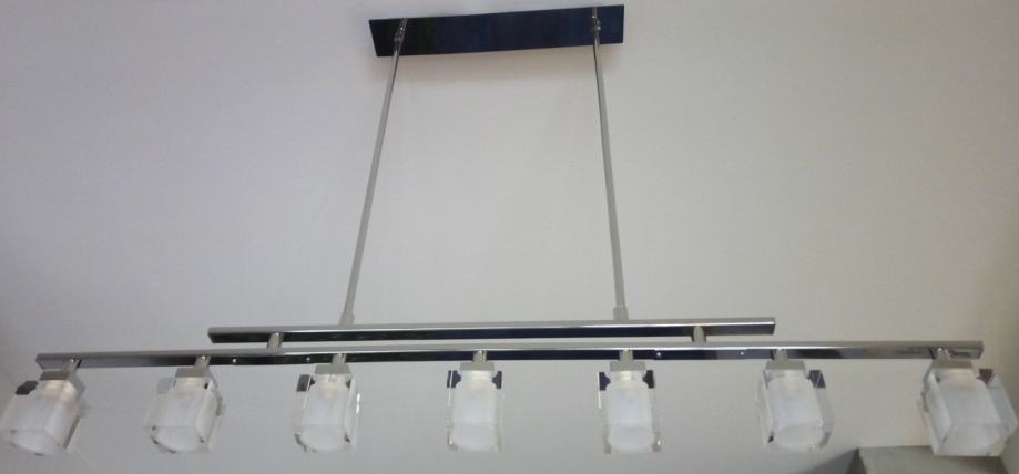 Prodajem luster Eglo Tanga 84092. Luster je izrađen od kroma sa sedam kristalnih kocki u koje idu G9 žarulje. Luster je u odličnom stanju, prodajem zbog preuređenja. Novi je koštao 2000 kuna.