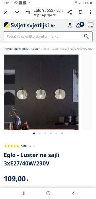 Svijetilka viseča ARISCANI. Metal Staklo Crna Excl 3x27 Max 40W Novo. U dučanu cijena 109 eura