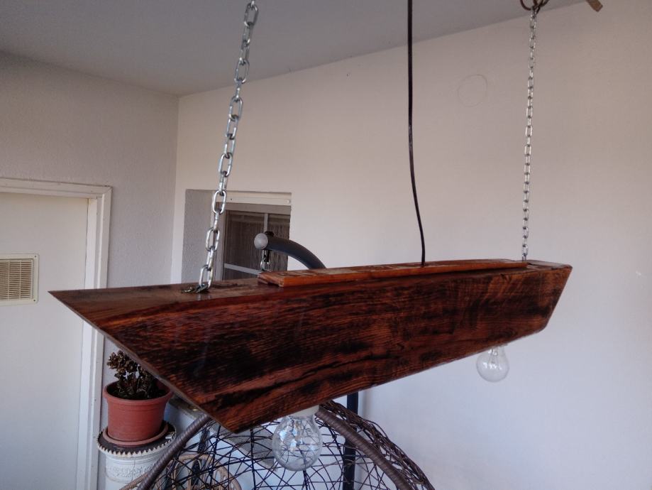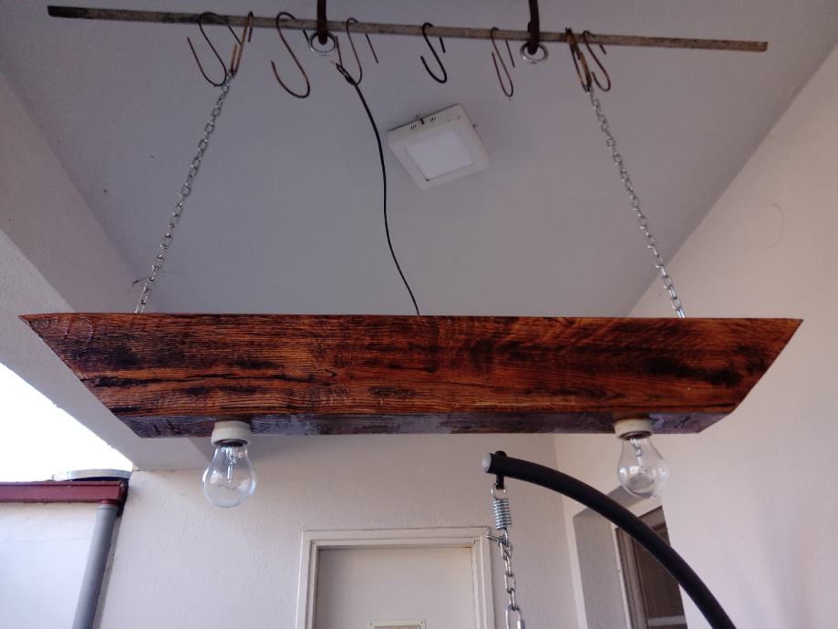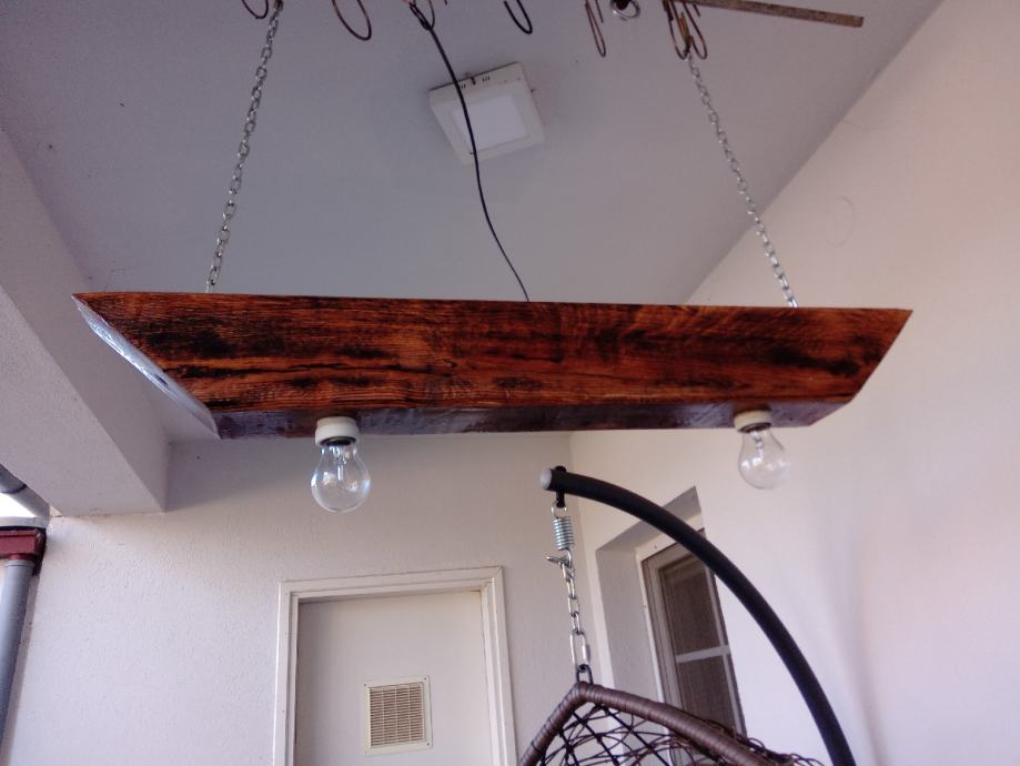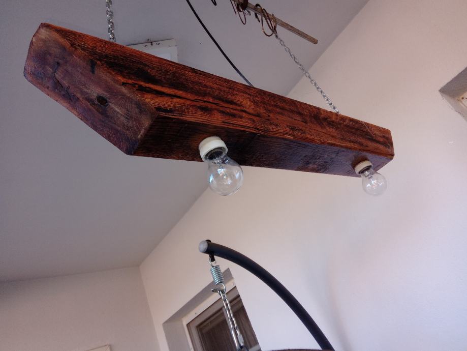 Od stare hrastove grede dužine 90 cm izrađen luster, pogledajte i ostale moje oglase s rasvjetom i dužim gredama od 150 cm