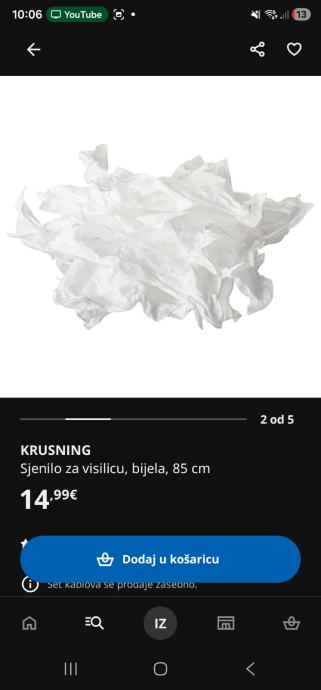 Prodajem Ikea višak rasvjete, melodi visilicu sa rozetom i guzvano sjenilo bez rozete. Raspakirano ali nekoristeno jer nam na kraju ne odgovara u prostoru.