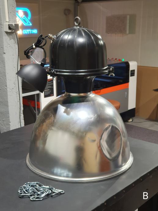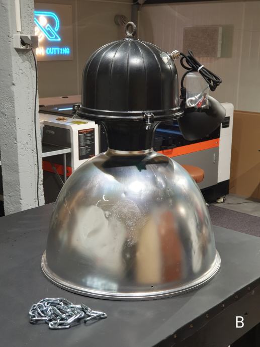 Plinska industrijska lampa interno očišćena i restaurirana na metalno grlo G27, gdje pašu sve klasične žarulje... na slikama su LED žarulje.