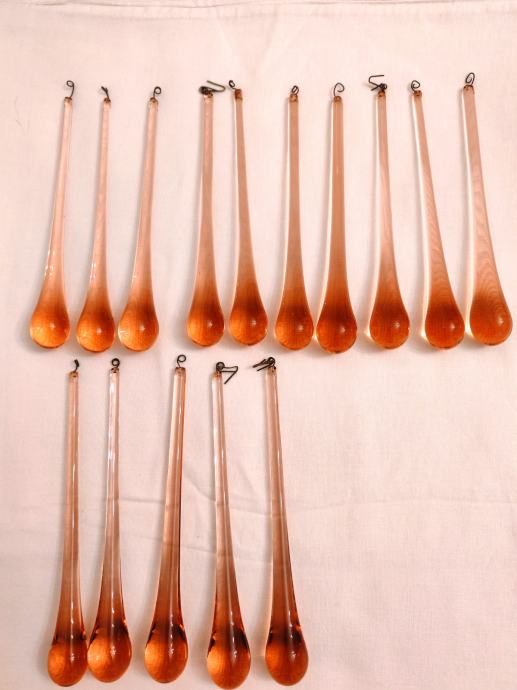 Kapi za luster od murano stakla,duljine 17 cm. Cijena 5 E po komadu.