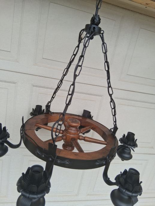 Luster s 6 ukrasni rasvjetni tijela na točku promjera 50 cm a vanjski promjer je 80 cm lustera, , cijena 250 eur kom. A imam 2 kom.,Uskrsni popust 50 eur po komada
