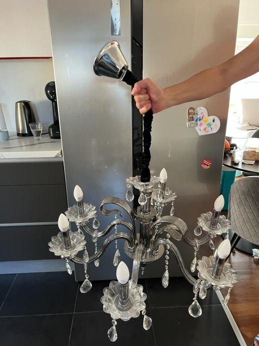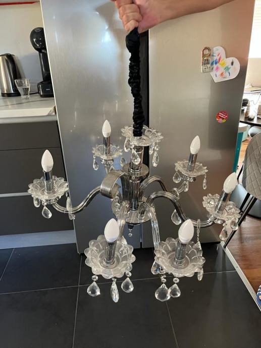 Prodajem kristalni luster, kratko korišten, ispravan je, ali je u selidbi pukao jedan metalni dio (vidljivo na slici) koji se moze ponovno nalijepiti. Primopredaja u Sisku