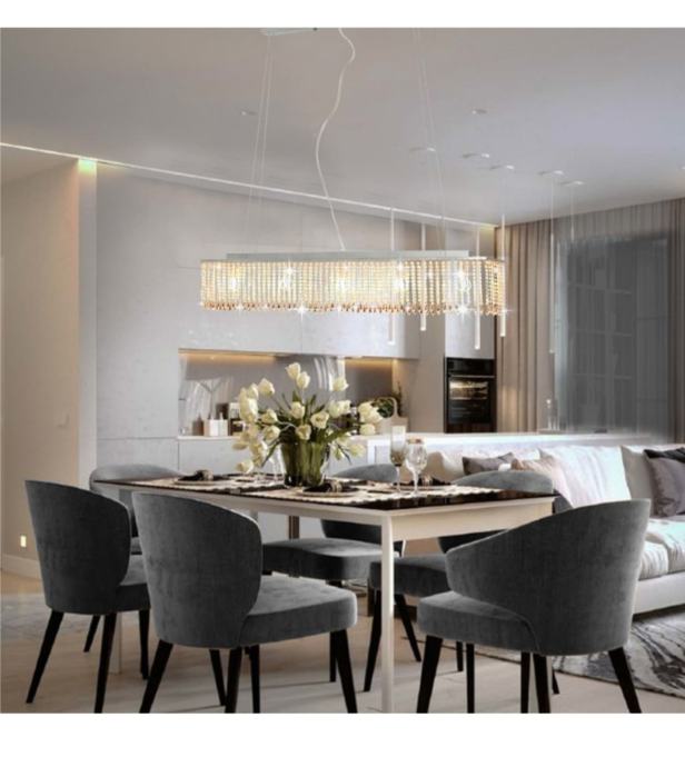 S ekskluzivnim dizajnom podesivim po visini, ova viseća svjetiljka bit će idealan izbor za uporabu u blagovaonicama, dnevnim boravcima, uredima itd. Sigurno će dodati stil i eleganciju bilo kojem uređenju interijera.