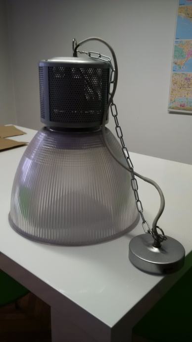 Lampa industrijskog dizajna zvona, koriste štedne žarulje, mala potrošnja energije, izvrsno osvjetljavaju prostor. U odličnom stanju.