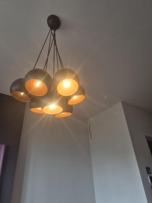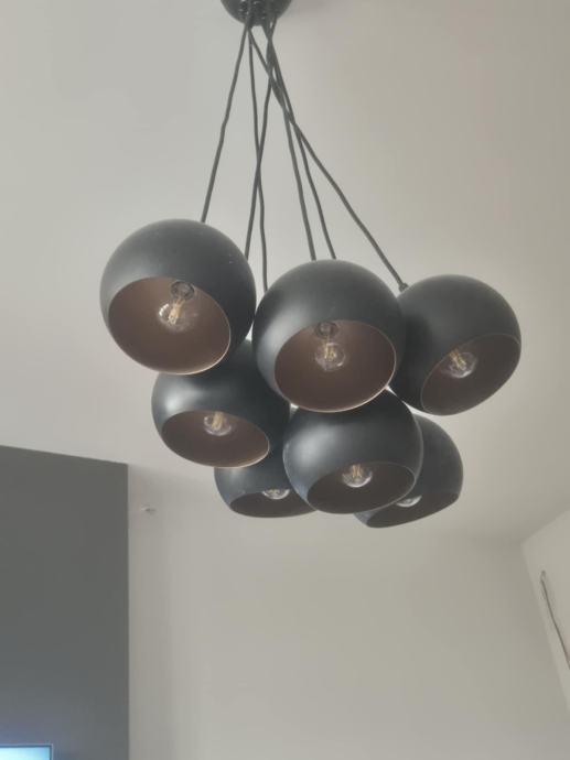 Prodajem lijep crni metalni luster sa bakrenom unutrašnjosti. Ima sedam rasvjetnih mjesta. Led žarulje uključene.