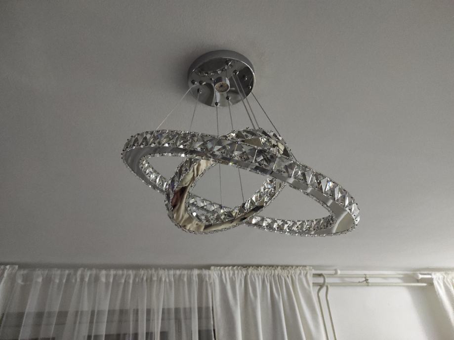 Prodajem novi zapakiran vrlo moderan i efektivan luster sa led lampicama. Veći krug promjera 50 cm, manji 30 cm. Razne mogućnosti kreiranja izgleda sa sajlama visilicama. Na slikama je luster u funkciji a prodaju se novi neraspakirani više komada. Moguća moja osobna dostava.