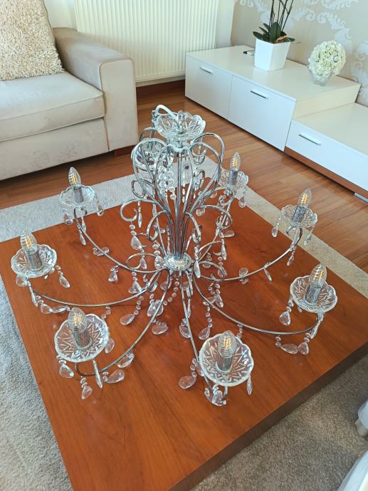 Prekrasan veliki luster ukrašen s bezbroj kristala. U izuzetno dobrom stanju, kao nov.