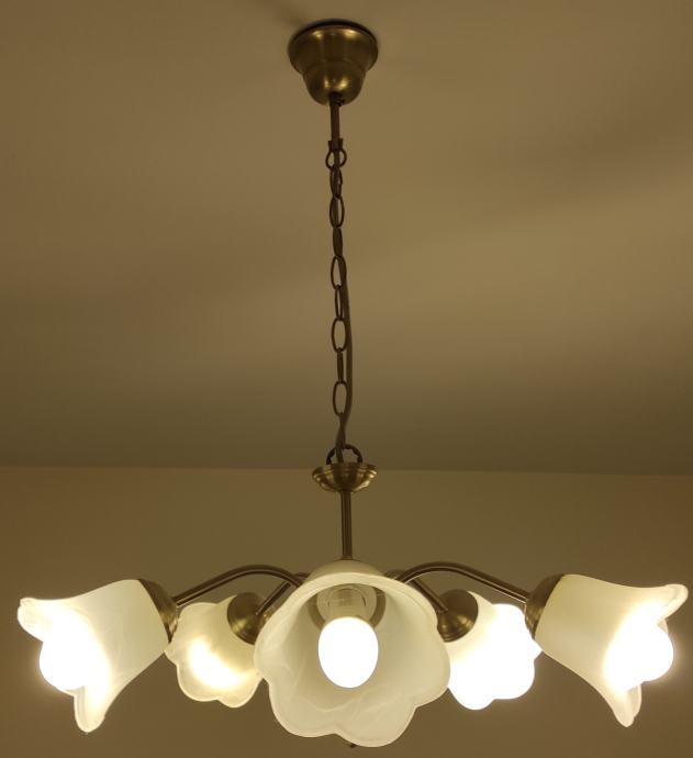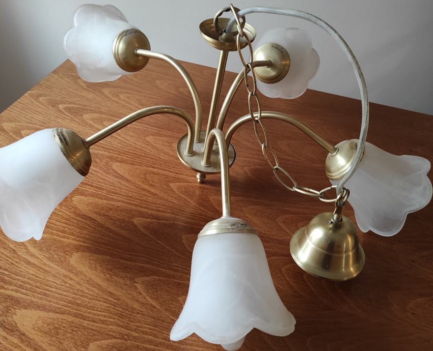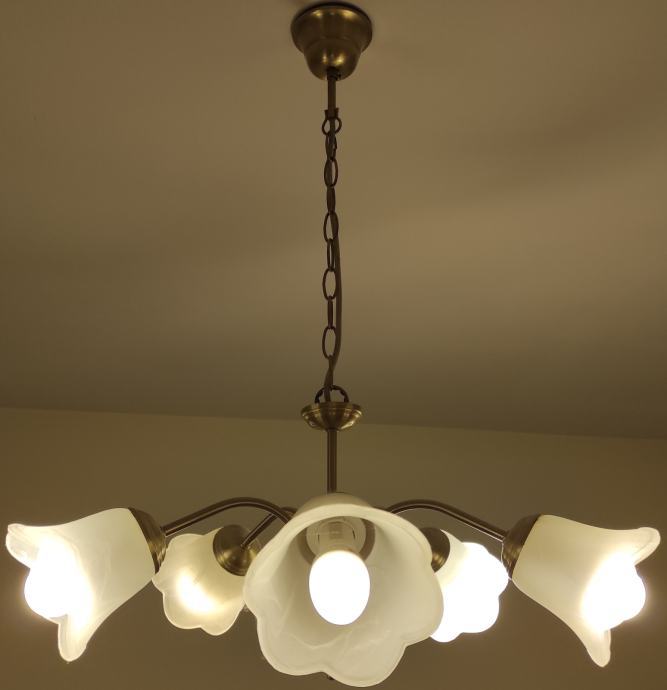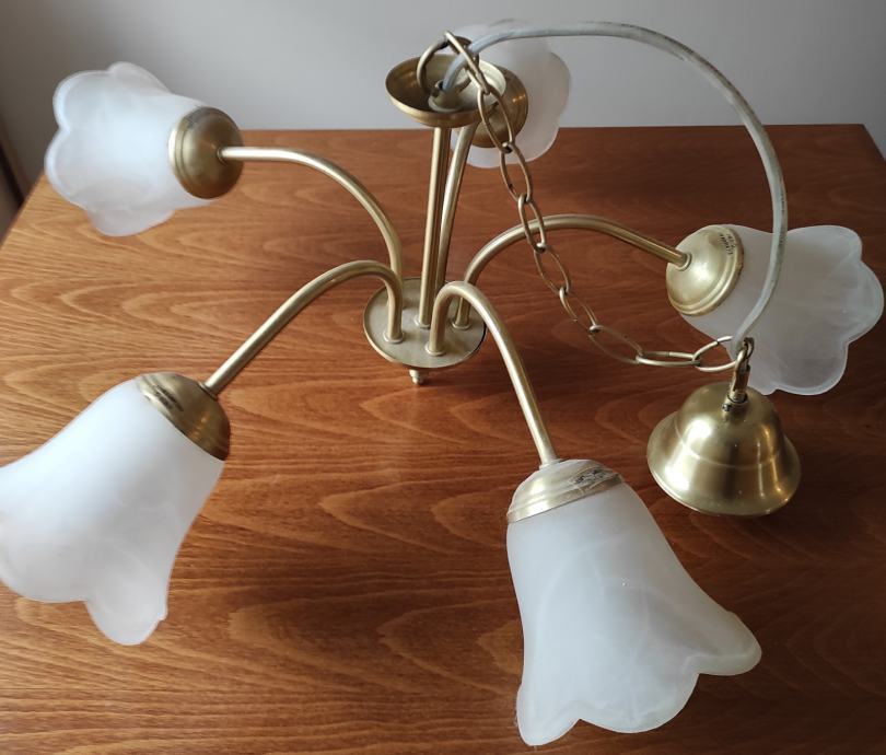 Luster sa 5 rasvjetnih tijela, uščuvano, korišteno 4 godine sa žaruljama E14