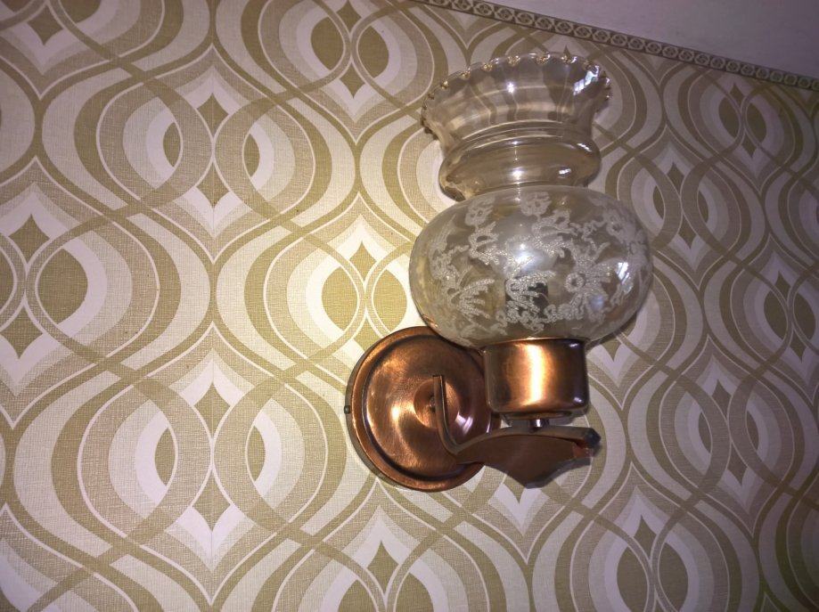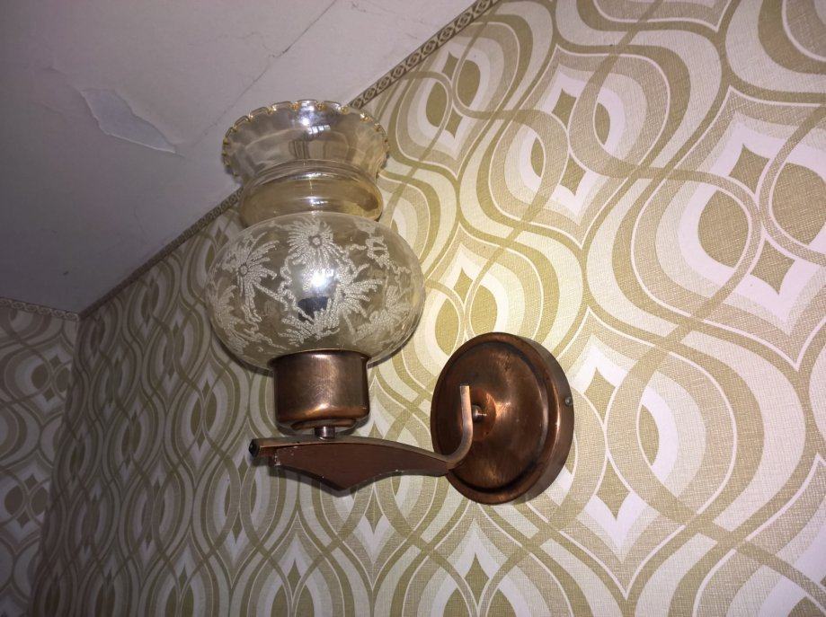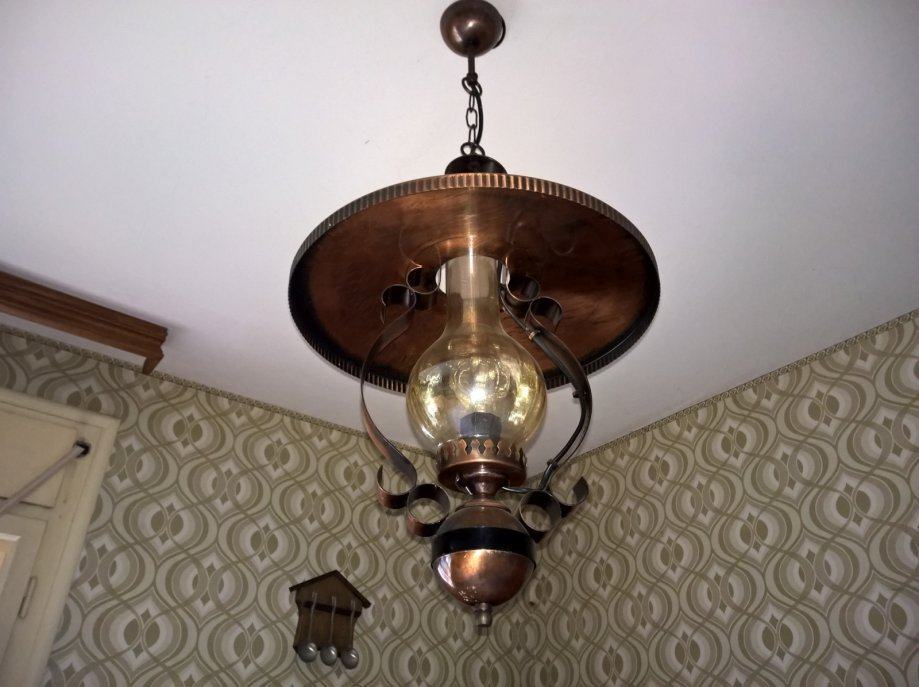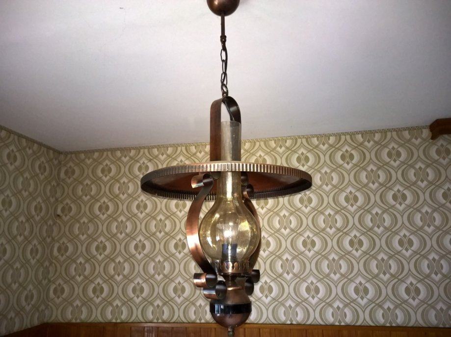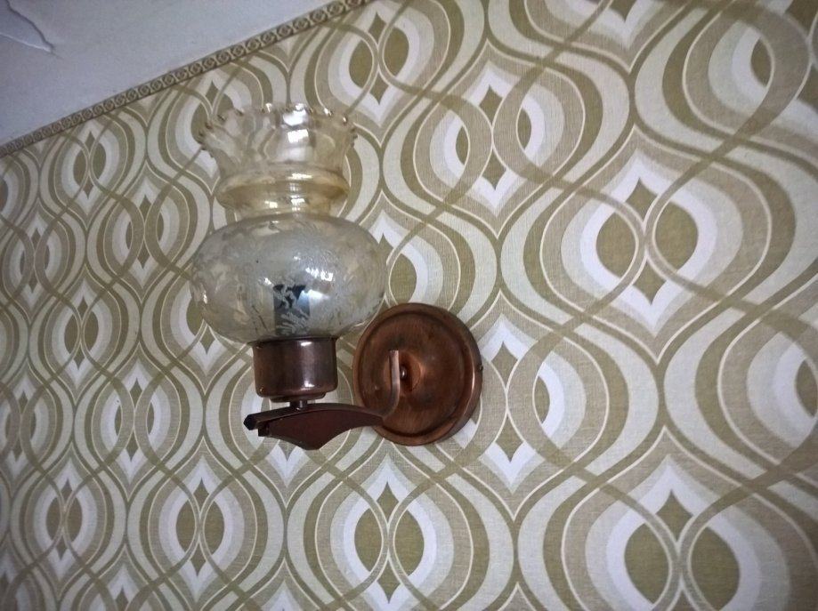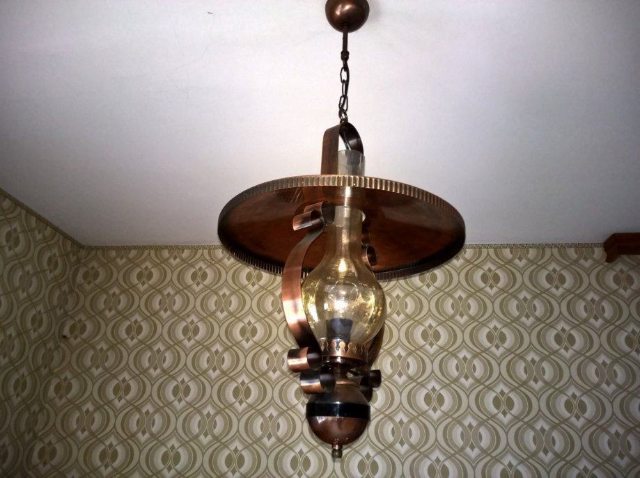 Luster i zdna lampa (1+1komad), u kombinacija bakra i staklo .Slike su autentične i orginalnog izgleda lustera i zidne lampe.