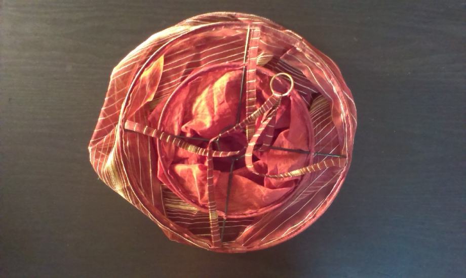 sjenilo luster, bordo boja, materijal svila ili nesto slicno.. dimenzije ø 30 cm , visina 60 cm
