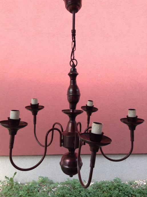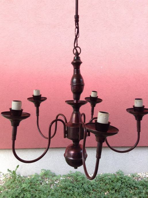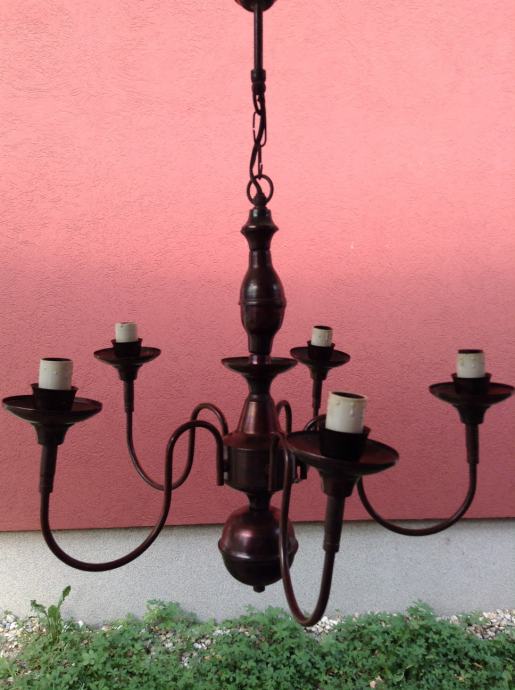 Prodajem veliki metalni luster sa pet rasvjetnih mjesta E14, visine oko 70 cm i promjera oko 55 cm, moguća regulacija visine, ispravan, uščuvan i funkcionalan.