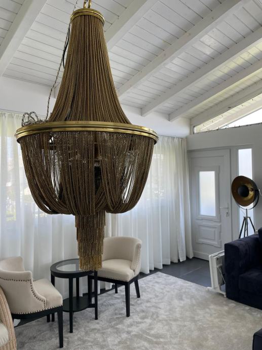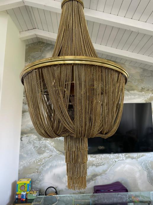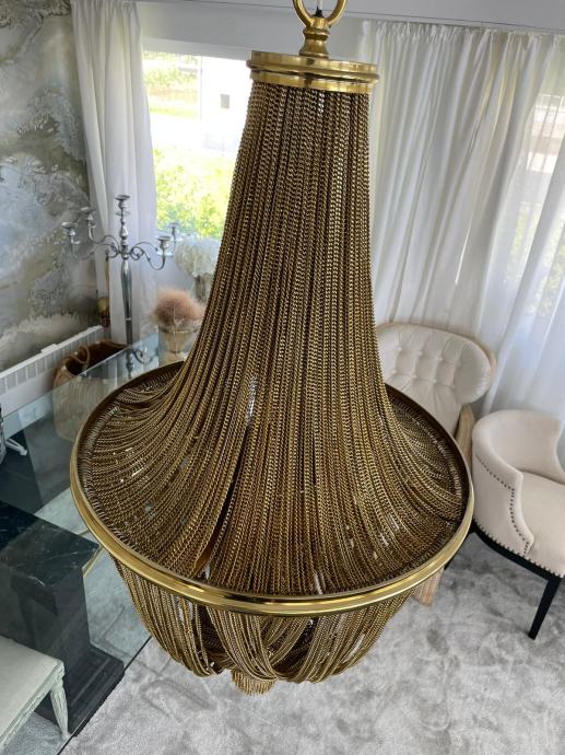 Veliki luster od lančića veličina metar sa 50 cm prečnik težina 17kg za visoka stubišta i dnevne boravke