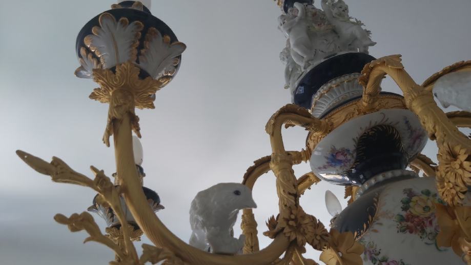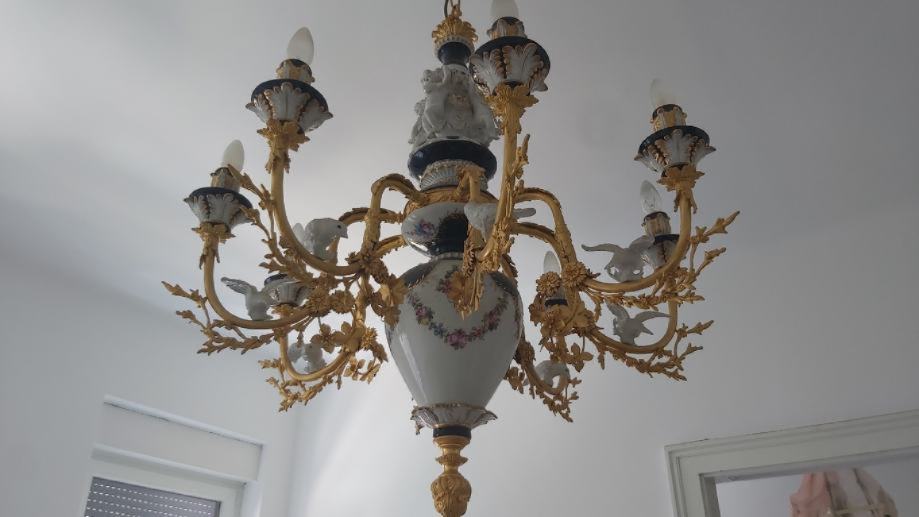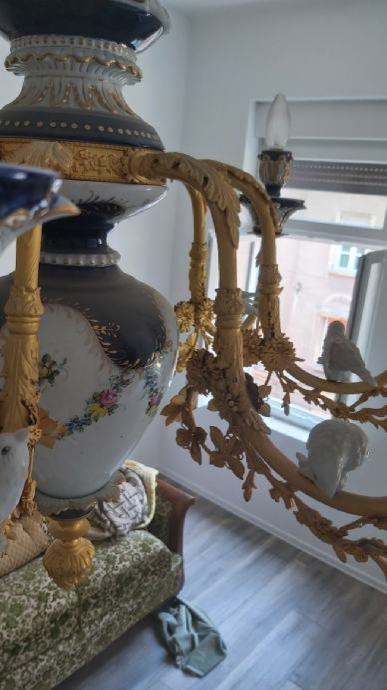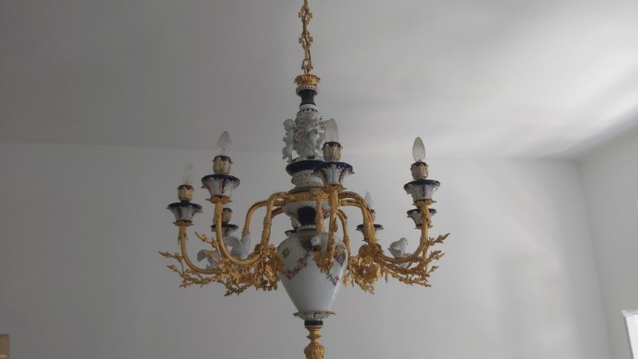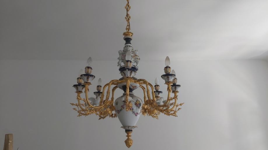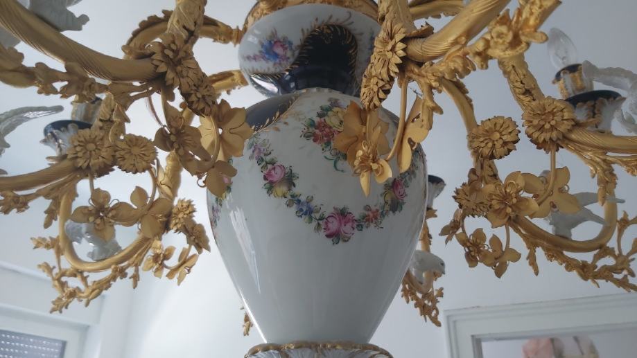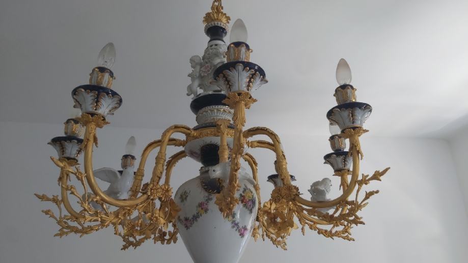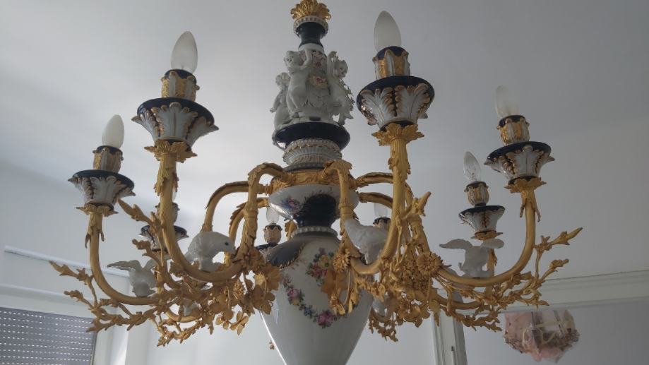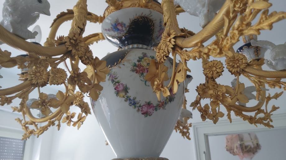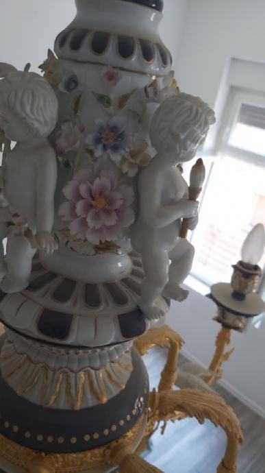 Unikatni porculanski luster cobalt blue,zlatnim lišćem i kerubinima