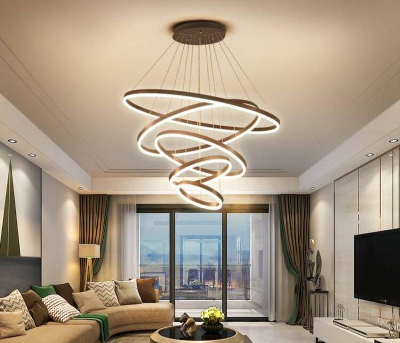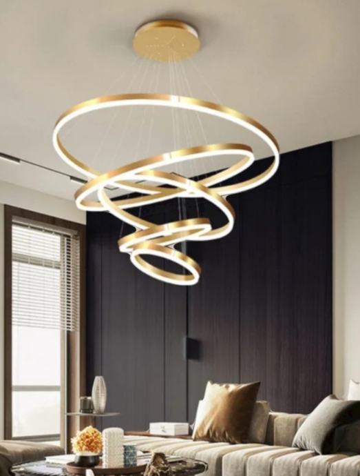 Luster novi ,zapakiran,visine max 4 m,minimalne prema prostoru, moderan zlatne boje.Za moderne i nove objekte.