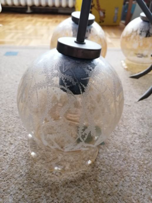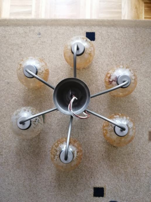 Prodajem retro luster sa 6 sjenila. Jedno sjenilo je drugačije od drugih (jedva vidljivo) i jedno je napuknulo (zaljepljeno je) sve je vidljivo na fotografijama.