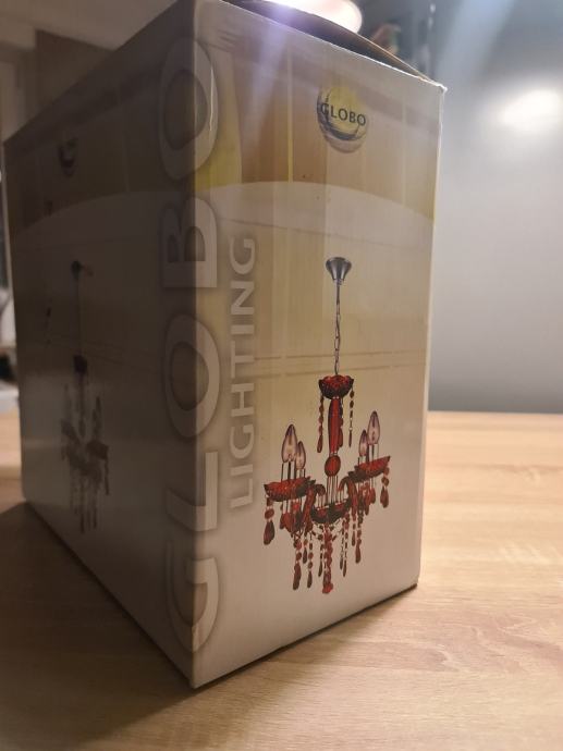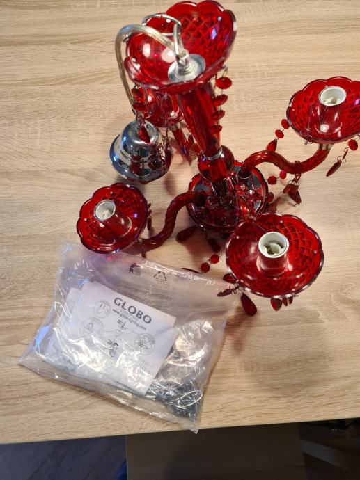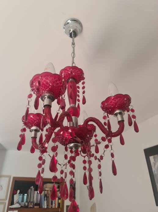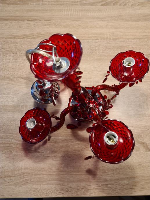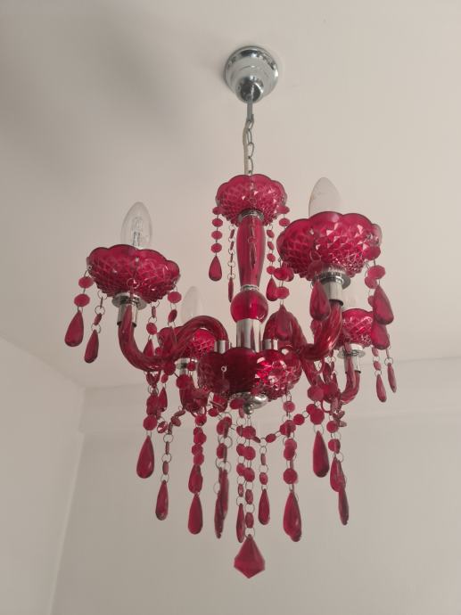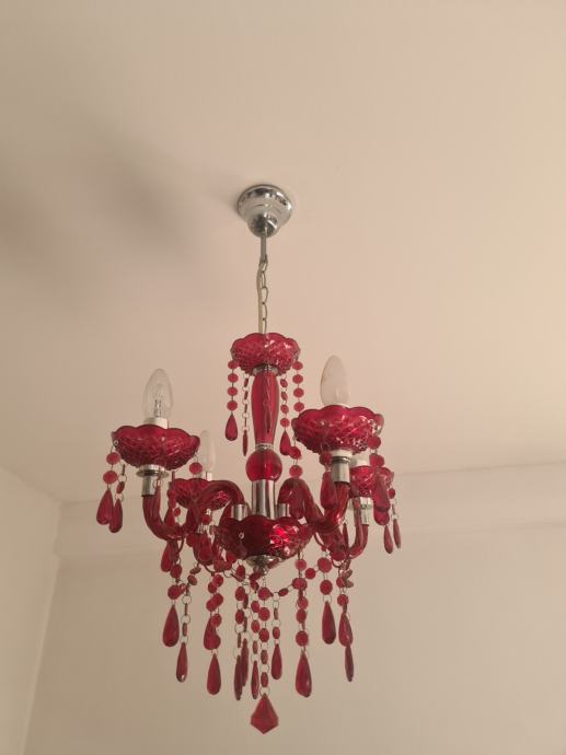 Crveni luster manjih dimenzija. Plastični. Rabljeni. Potpuno ispravan. U kutiji.