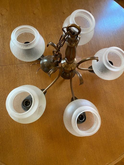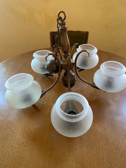 Prodajem elegantan luster s 5 lampi/staklenih kugli, u odličnom stanju i potpuno ispravan. Idealan za dnevni boravak, blagovaonu ili poslovni prostor.