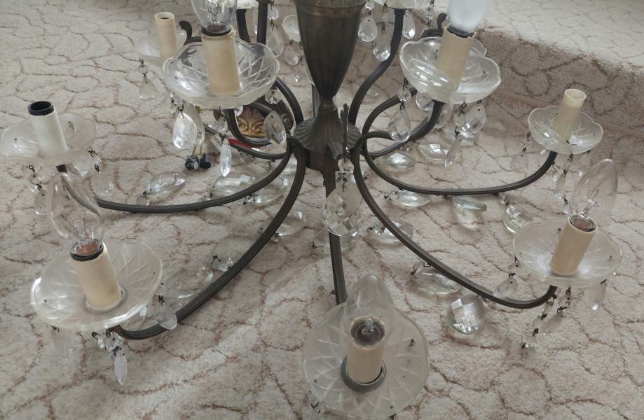 Prodajem predivan, raskošno luster od mesinga i staklenih kristalnih ukrasa.