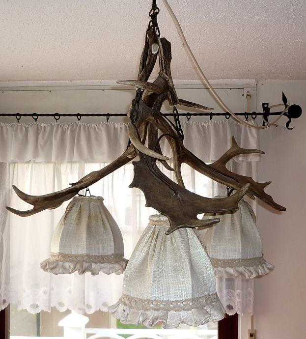 Prodajem luster od rogova od soba. Luster je dimenzija oko 80x80 cm i ima tri rasvjetna tijela. Lusteri poput ovog su trenutno hit na tržištu, pogotovo ako se promijene rasvjetna tijela i stave modernija. U tom slučaju postižu i cijene do 1.000 eura tako da je ovaj luster prilika za nekoga tko i ne želi "rogove" u kući no ima znanja i volje preurediti ga i zaraditi. Telefon 098 1830624.