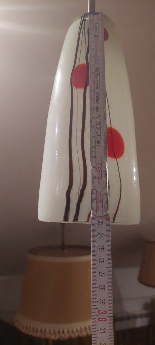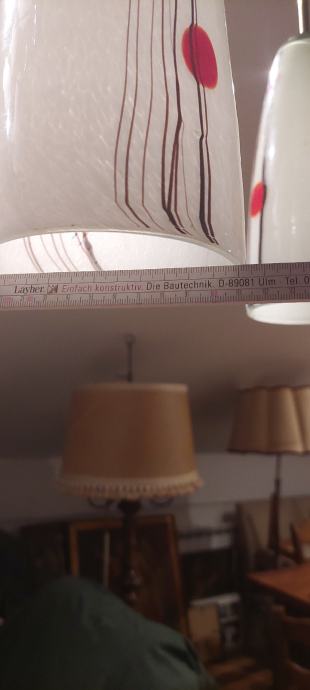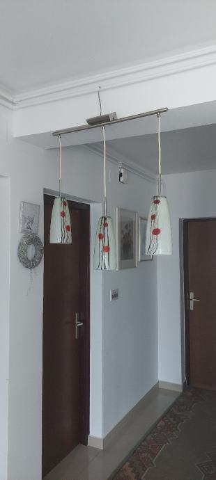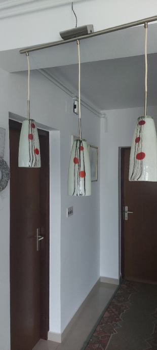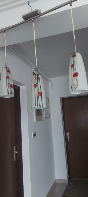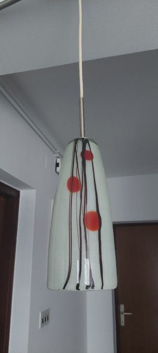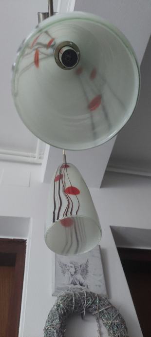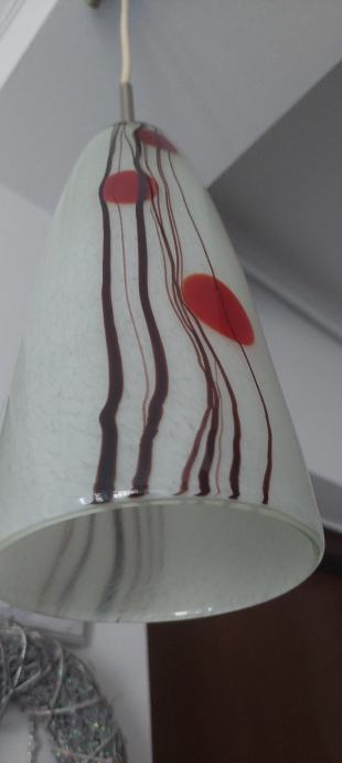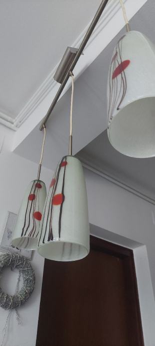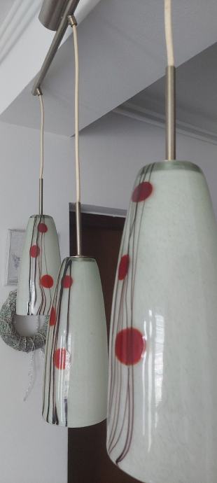 Prodajem luster koji se sastoji od tri viseća elementa ukrašenog debelog stakla .Kao što se vidi na slikama luster je neoštećen i u ispravnom stanju.
