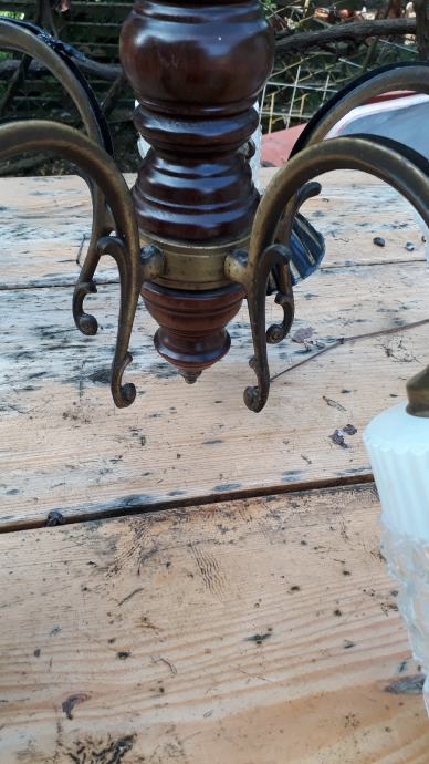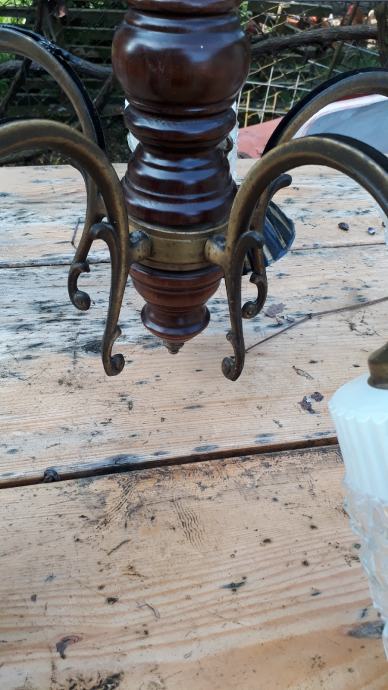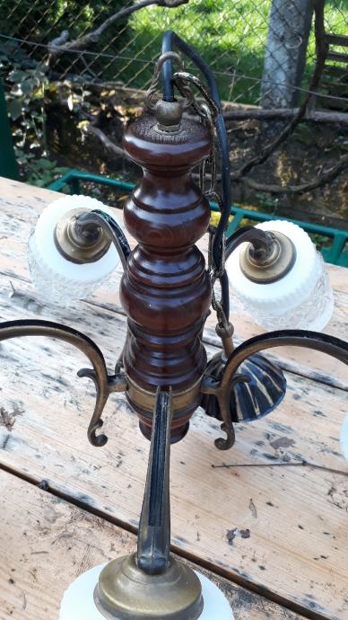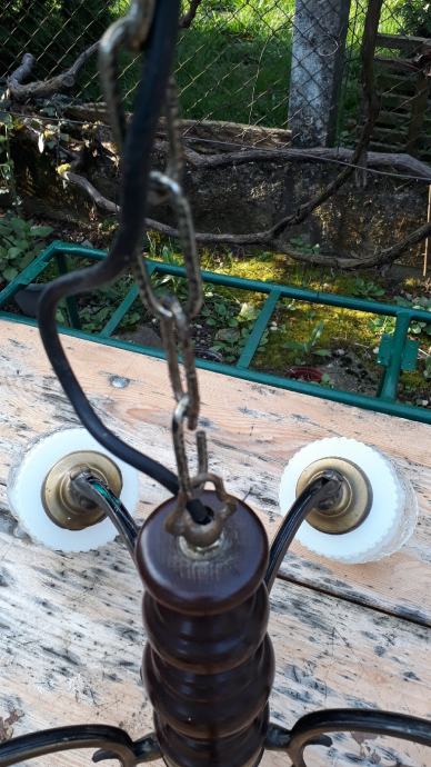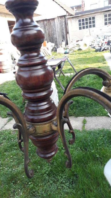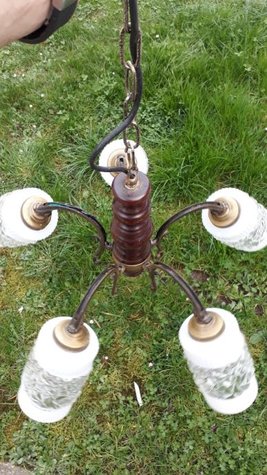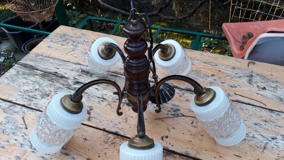 Stari luster drvo i metal 5 grla E14 dobar dobra stakla sve cijelo.šaljem.0958241802