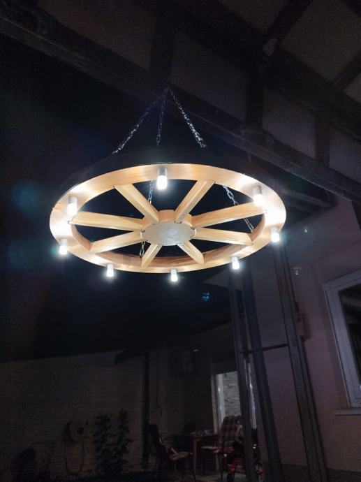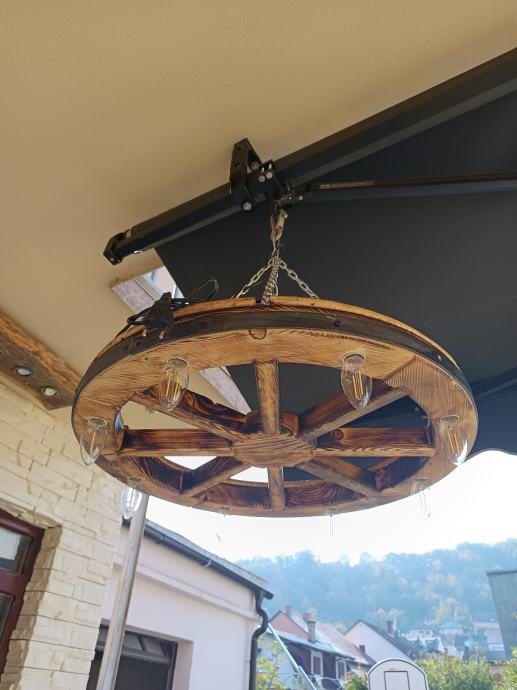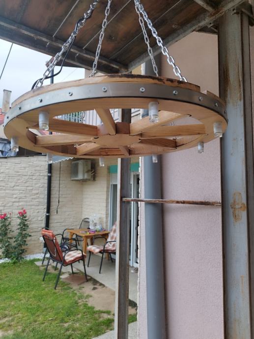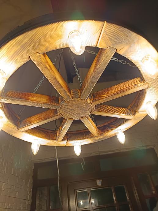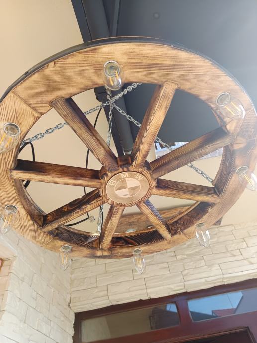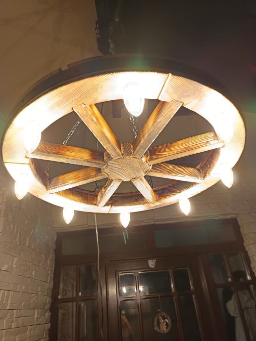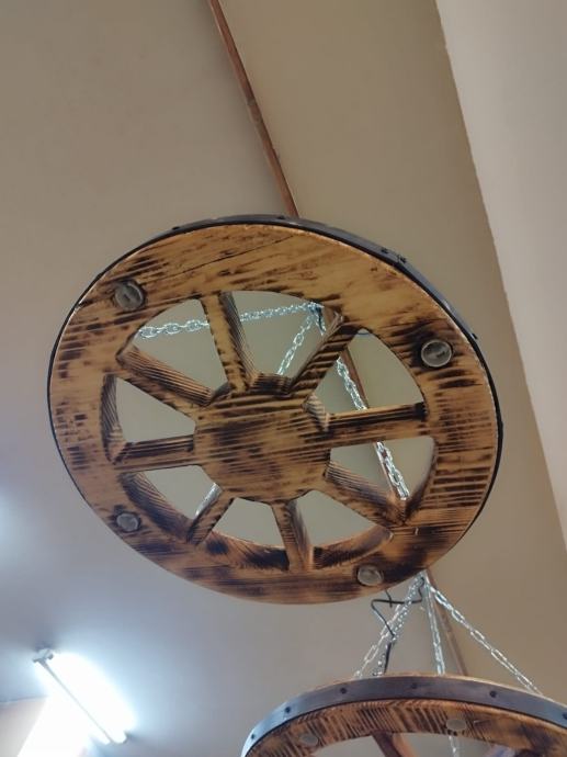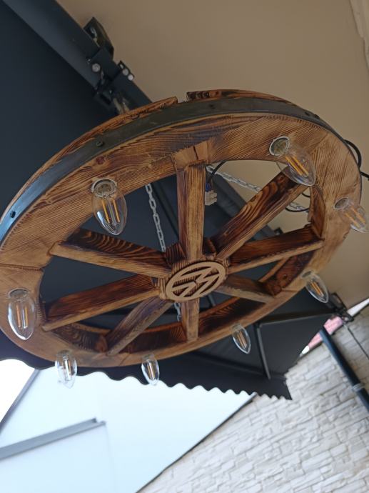 Luster stari kotač će vašem prostoru s takvom rasvjetom dati starinski štih. Ovaj dekorativni luster uklapa se u sve rustikalno uređene prostore, konobe, terase i restorane. Dostupne su dvije veličine promjer 60 cm i 50 cm.