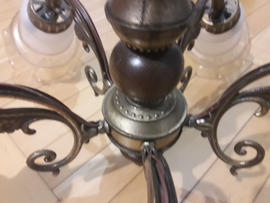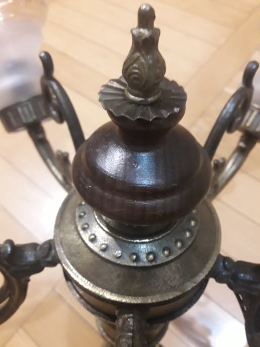 Prodajem ispravan starinski luster iz 80 godina. Izrađen je od mesinga sa dodatkom drva. Ima pet rasvijetlih kugli s uskim grlom (E14).