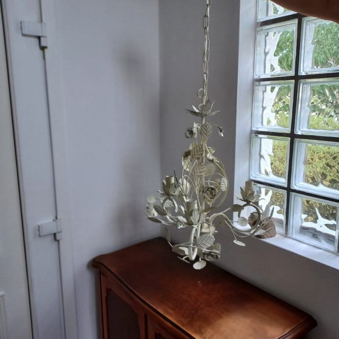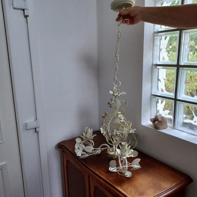 Moderan viseči luster od metala sa ornamentima ruža i lističa sa tri rasvjetne sviječe