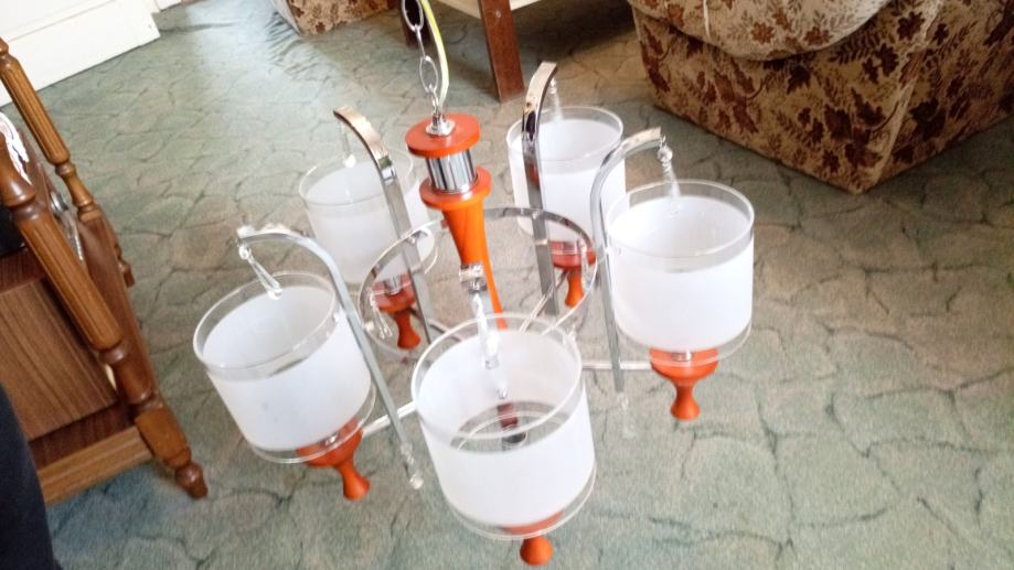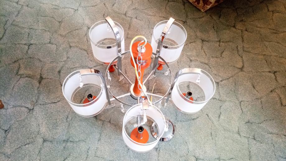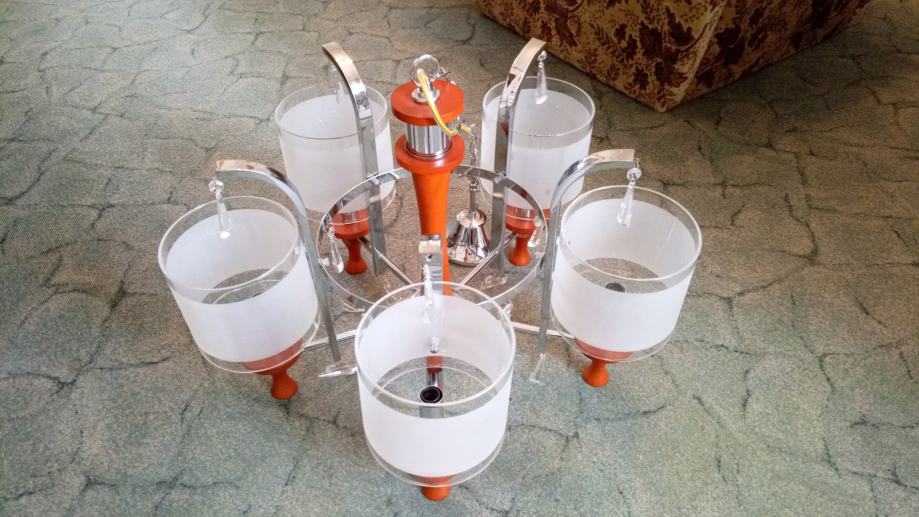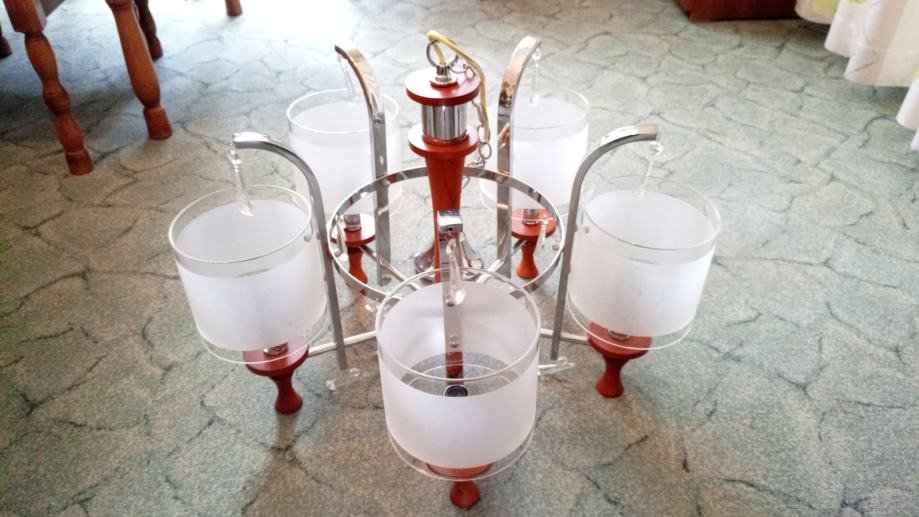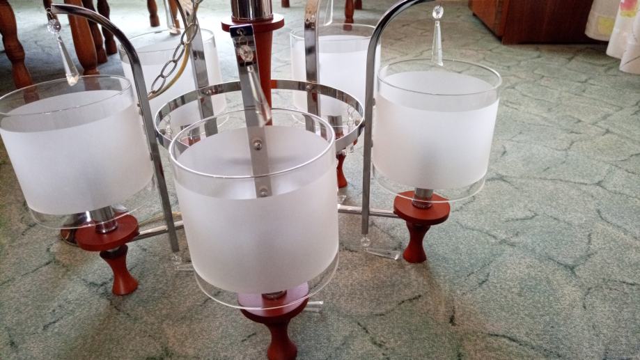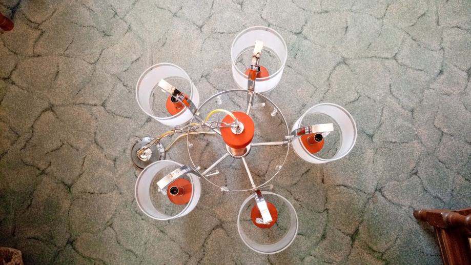 Prodajem luster sa visećim staklenim ukrasima, 5 žarulja.
