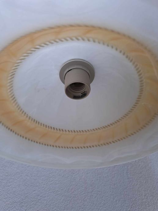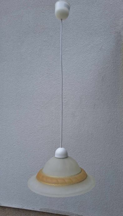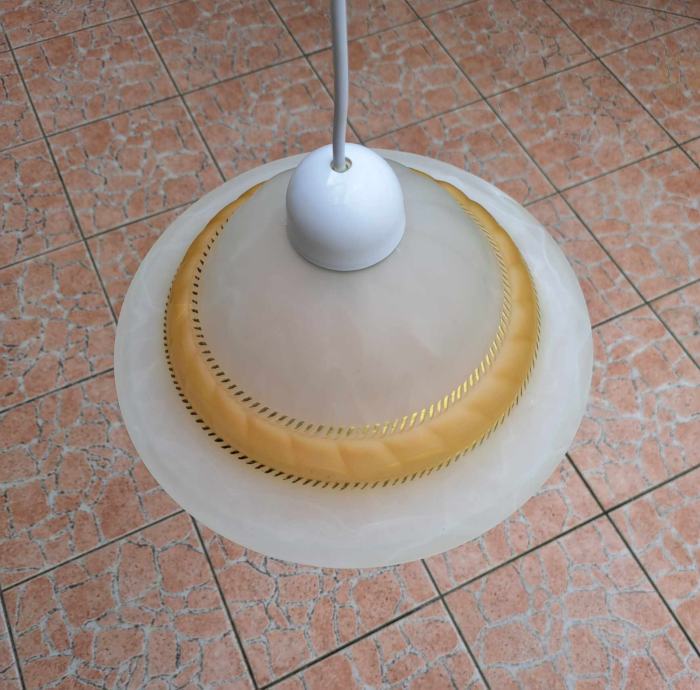 Kvalitetan stakleni luster bijele boje i oker prugom u središnjem dijelu,