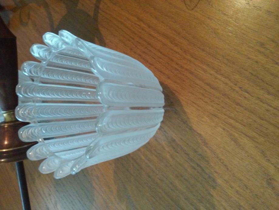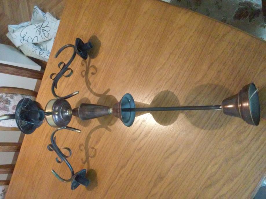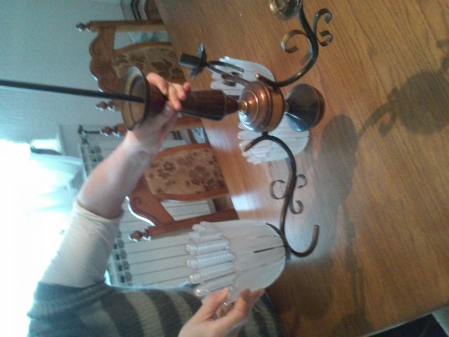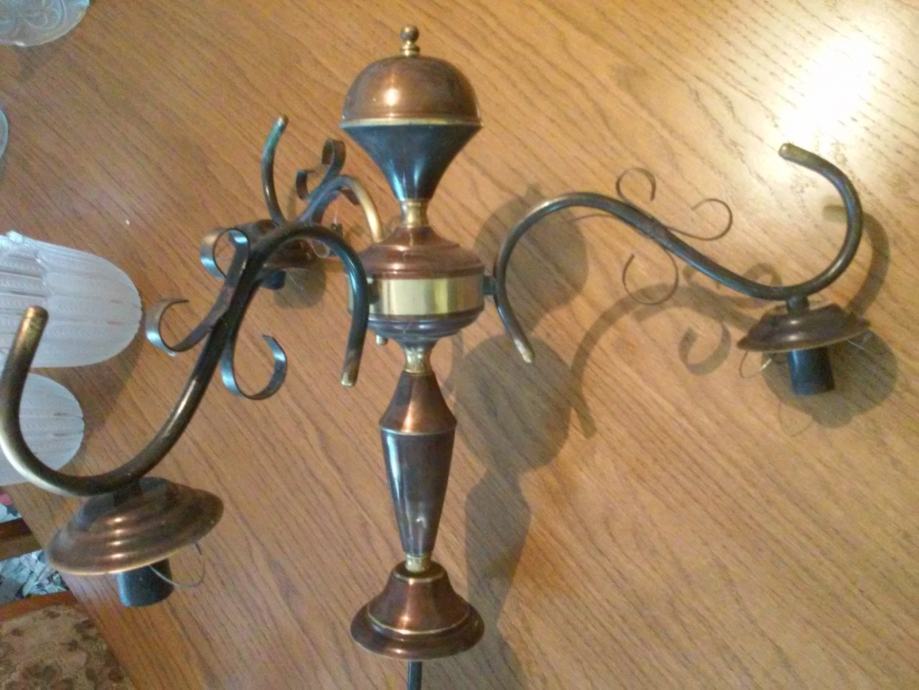 Brončani luster visilica sa tri lepezaste kupole, visine 15 cm , promjera 14 cm.
