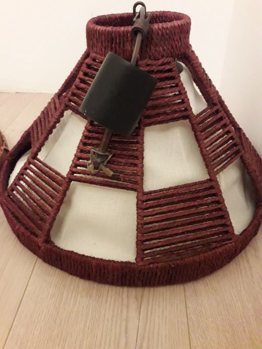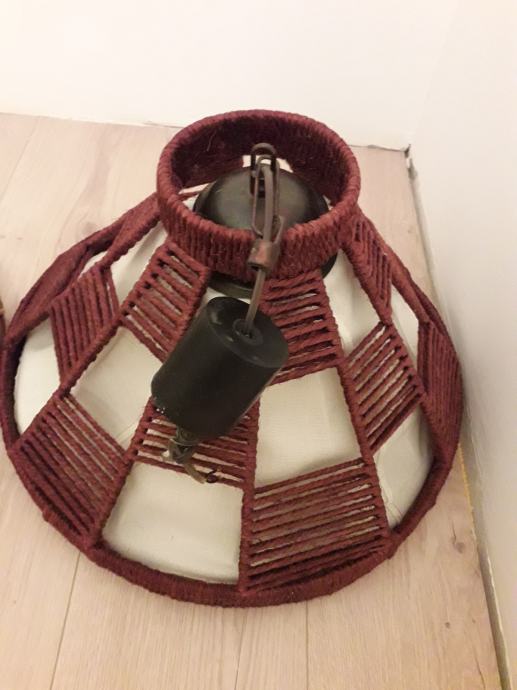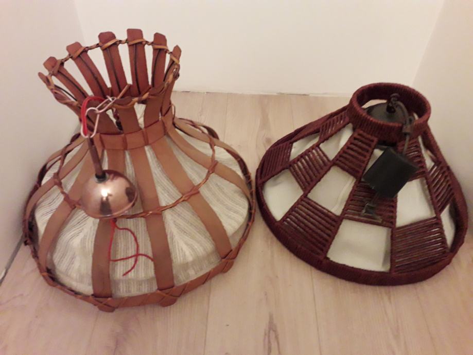 Prodajem 2 lustera za hodnik, dnevnu ili spavaću sobu. Potpuno ispravani, očuvani i nedugo bili u upotrebi. Lusteri se sastoje od čvrstog drvenog dijela, dekorativne tkanine, metalne konstrukcije i mesinga. Tkanina je oprana i nepoderana. Visina oba lustera bez lanca je 38 cm a s lancem 57 cm (lanac se može skratiti). Promjer u donjem, najširem dijelu je 48 cm. Vrlo je lagan. Cijena po kom 8 e.