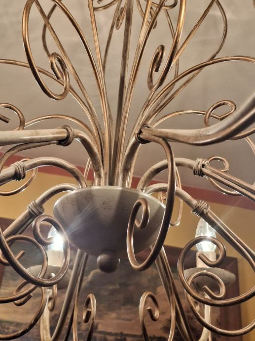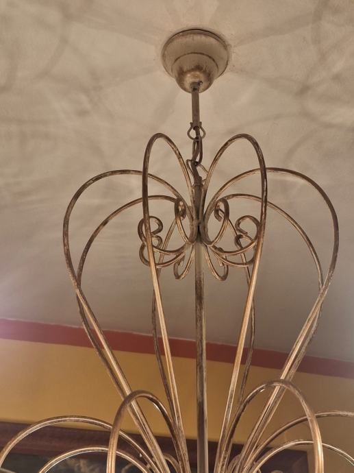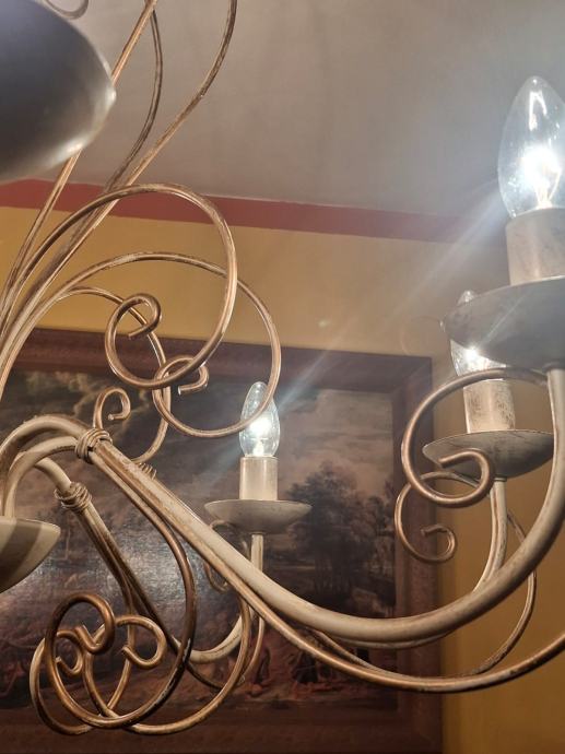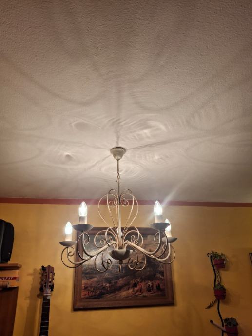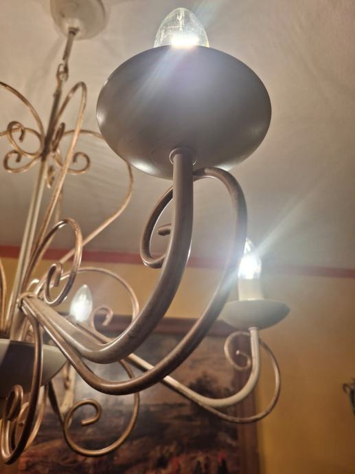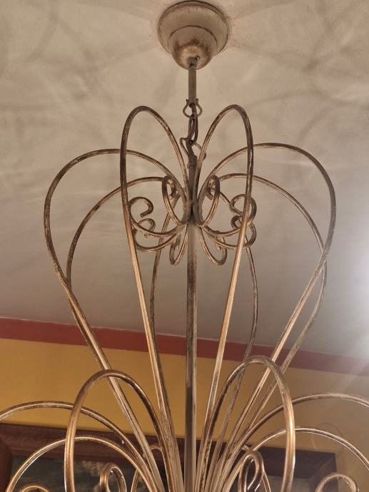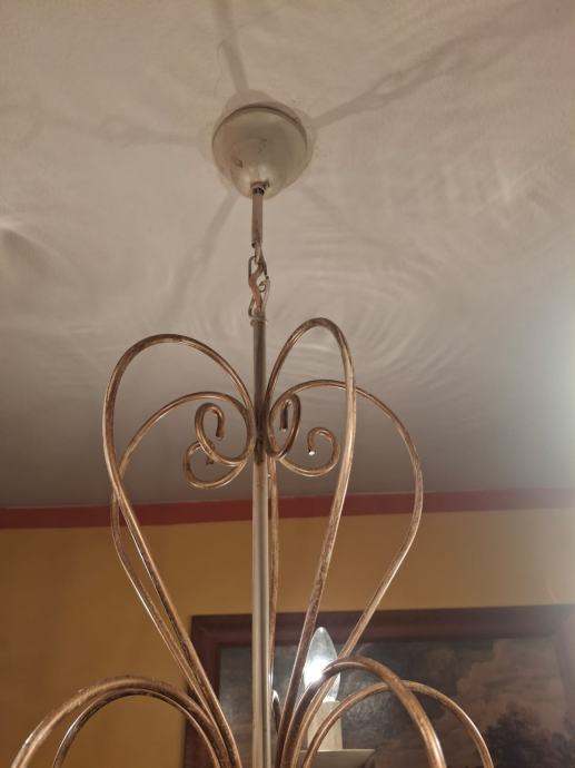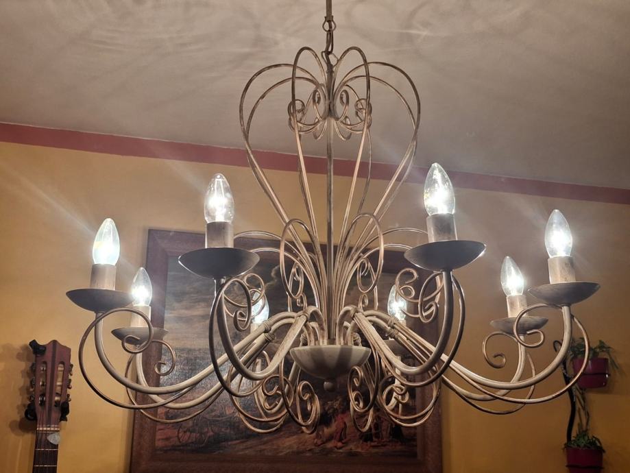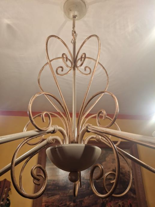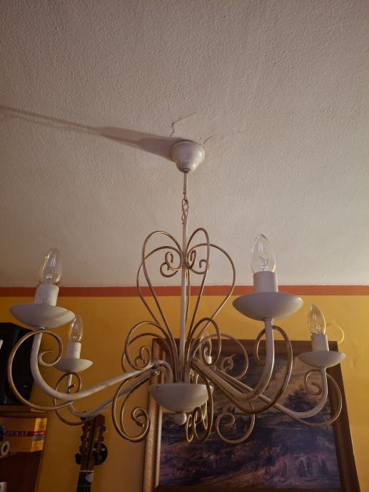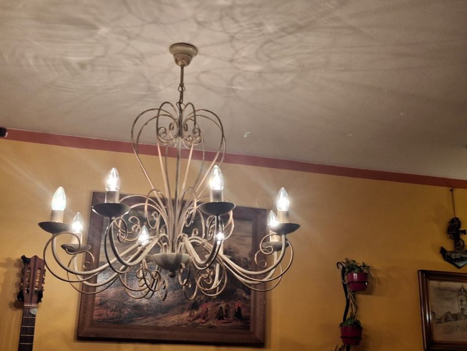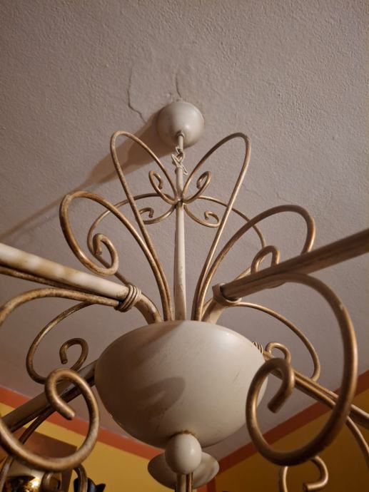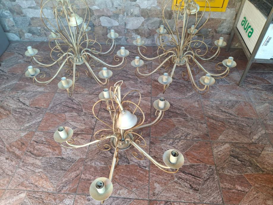 Prodajem dva veća lustera sa osam krakova i jedan manji sa pet krakova. Svi su istog dizajna, pa se i prodaju, po mogućnosti, u kompletu. Moguća je i pojedinačna prodaja. Zlatno-krem boje, ispravni. Veći lusteri su visine 78 cm i promjera 75 cm. Manji luster je visine 66 cm i promjera 64 cm. Besplatna dostava za cijelu RH. Cijena nije fiksna.