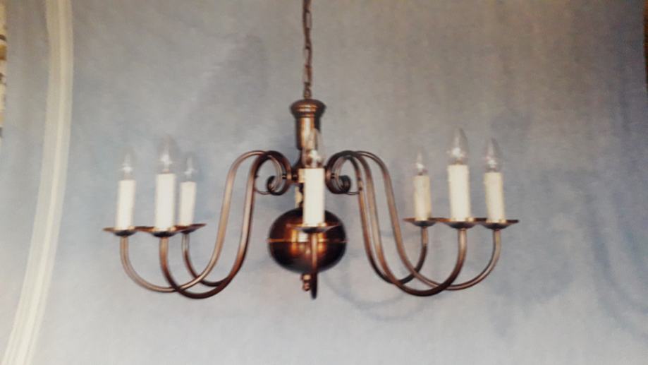 Prodajem nekoliko komada lustera Holandez, ms patina(ostatak od proizvodnje), sa 6 ili više krakova, Žarulja e 14, po povoljnoj cijeni. Lusteri su potpuno novi.