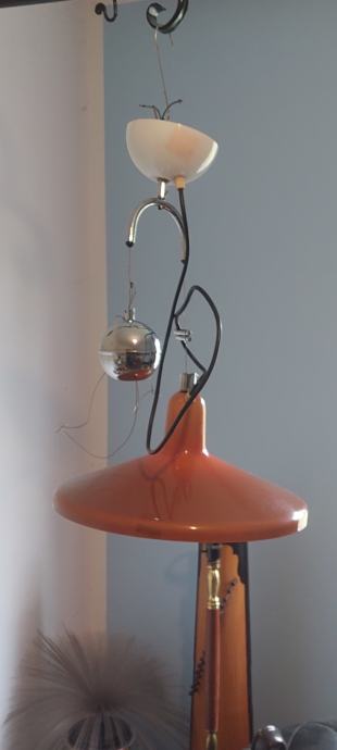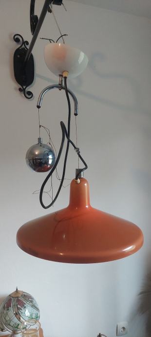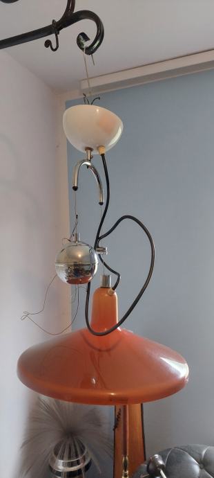Dizajnirani luster, space age, meblo guzzini, mala manta, precnika 38cm. Vrlo lep i kaptitalan primerak, koji ce ulepstati odredjeni ambijent. Zamislite da vas plafon, nosi ovakav svemirski luster iz sedamdesetih godina. Stanje prikazano, moguca dostava do Zagreba