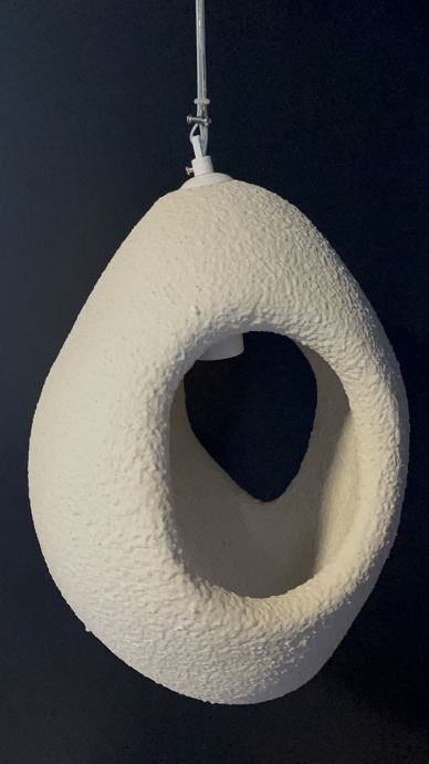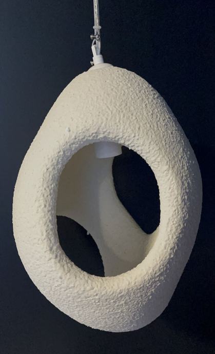 Moderna impresivna visilica većih dimenzija, organskog dizajna izrađena od recikliranih materijala, kombinacija staklenih vlakana, kompozitnih materijala, tekstilne špricane boje, metalnih nosača....