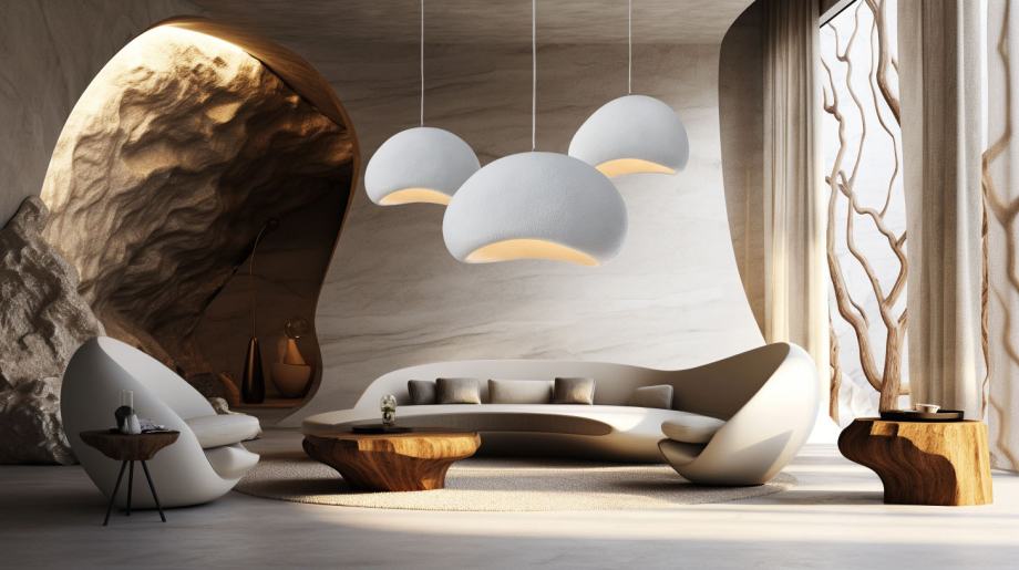 Moderna impresivna visilica većih dimenzija, organskog dizajna izrađena od recikliranih materijala, kombinacija staklenih vlakana, kompozitnih materijala, tekstilne špricane boje, metalnih nosača....