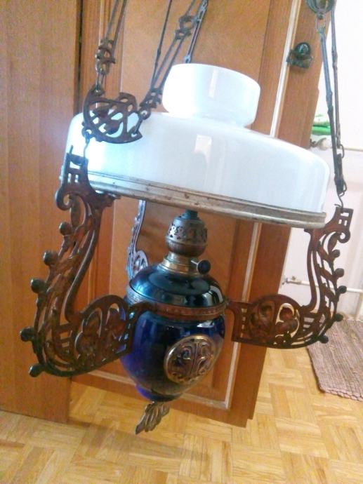 Stari petrolej luster koji je u obitelji otprilike stotinjak godina, ispravan je i u funkciji i kao petrolej ili sa žaruljom, te dobro očuvan. Do prije nekoliko godina još je bio u upotrebi kao viseći luster sa žaruljom. Na slikama su vidljivi bitni dijelovi, neki manji dijelovi su zapakirani te prilikom slikanja nisu stavljeni na luster. Cijena nije fiksna, moguć je dogovor oko cijene.