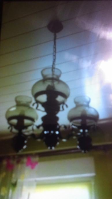prodajem rustikalni luster, gornji stakleni dio, ( gdje su sijalice ), se skida kod izmjene sijalica, i kod čišćenja