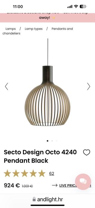 Zbog preuredjenja prodajem dizajnersku visilicu Secto design, Octo 4240. Visilica je kao nova bez ikakvih ostecenja. Dimenzije u galeriji. Cijena nove oko 900-1000 eur.